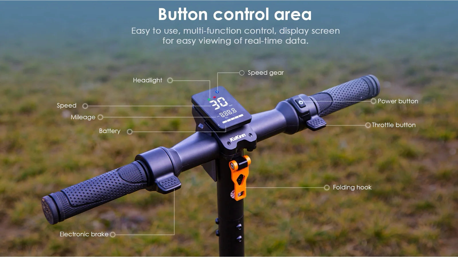KuKirin S1 Max adopts power-off brake + auxiliary brake, which with good ventilation and heat dissipation and stronger braking; even when facing the complex off-road environment at high speeds, it can be easily braked, giving you the confidence to stop when you want to.